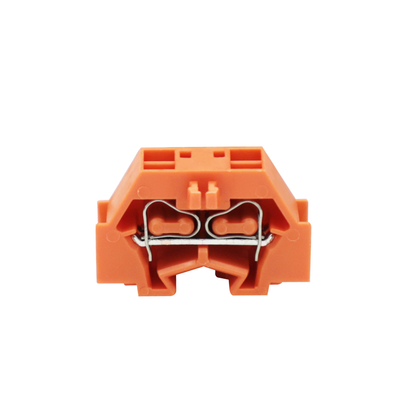 Onze modulaire veeraansluitblokken, ideaal voor paneelmontage, maken gebruik van veerdrukverbindingen. Ze elimineren de behoefte aan schroeven of klemmen, waardoor de servicekosten en de installatietijd worden verkort met gereedschapsvrije, directe draadinvoeging. Het veermechanisme zorgt voor betrouwbare verbindingen die resistent zijn tegen trillingen en thermische expansie, terwijl het verschillende draadgroottes voor flexibiliteit biedt.