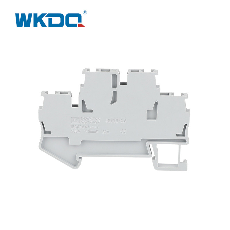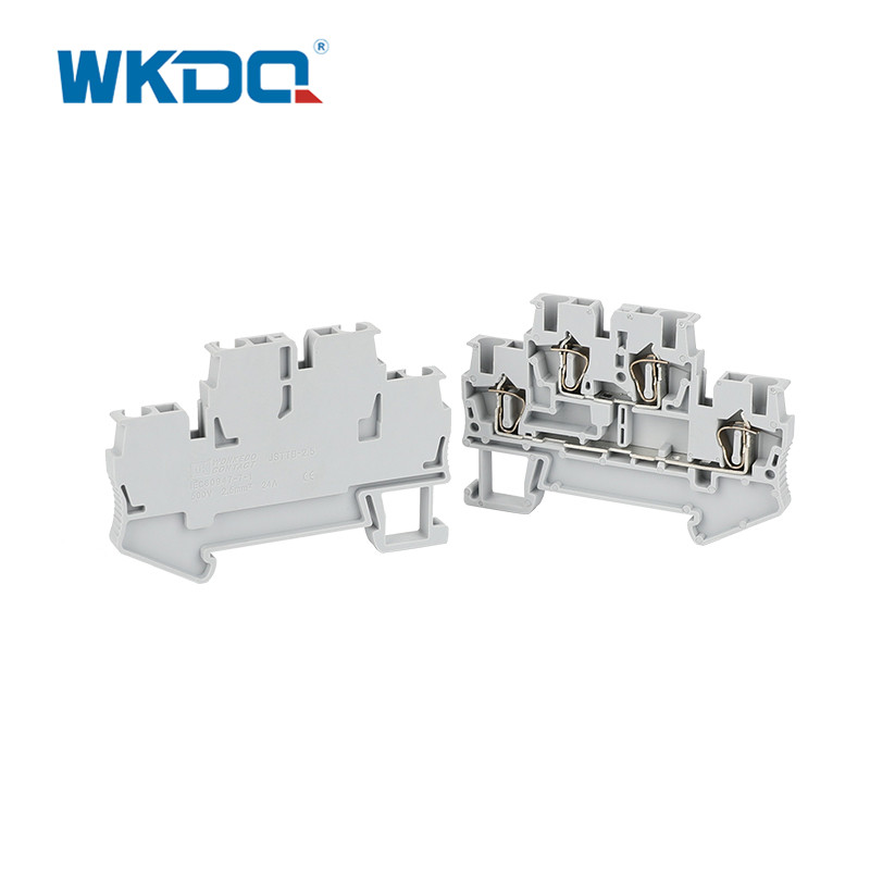 Het meerlaagse veerklemmenblok is gemaakt van vlamvertragend PA66 en vernikkeld messing. Het beschikt over een uniek dubbellaags potentieel integratieontwerp, waardoor een enkele schaal meerdere circuits kan huisvesten en drie keer zoveel bedradingsruimte kan worden bespaard. Krimpen zonder gereedschap, gecombineerd met een anti-loslating en ontgassing strakke structuur, en corrosiebestendige contactpunten zorgen voor een stabiele stroomvoorziening op lange termijn. De universele installatie op de DIN-rail van 35 mm aan de voorzijde en het vlakke identificatiegebied vereenvoudigen het beheer. Het is compatibel met eindkappen, insteekbruggen en andere accessoires en voldoet aan de vereisten voor stroomverdeling met hoge dichtheid van compacte scenario's.